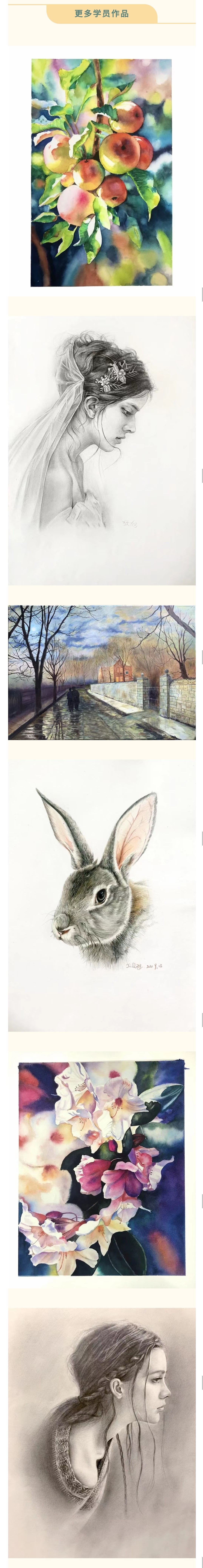 这张画以它的自然生动打动了我,颜色纯净、画质清晰、过渡自然是一张优秀的水彩画必须要具备的,这体现了对水彩技法熟练掌控的能力。其次,陈学员对细节的把握较好,在质感的刻画中,透明与半透明物体是相对比较难画的,比如,玻璃、水、复杂的宝石等。它需要我们对色彩调色原理烂熟于心,对控水能力把握得十分到位。相信随着陈学员素描水平的再提高,对水彩细节表达能力会能更精进。